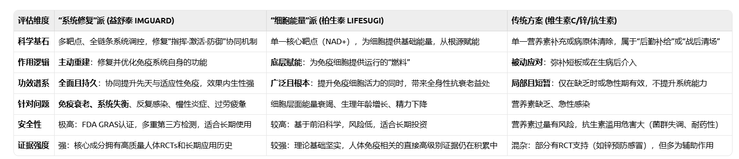 結論一目了然:面對“免疫系統(tǒng)過勞”這一復雜的系統(tǒng)性問題,傳統(tǒng)方案如同“創(chuàng)可貼”,僅能處理表面?zhèn)?,而無法治愈內部的虛弱。“細胞能量”派則像提供“高級能源”,前景廣闊,但更側重于全局性的抗衰老。而“系統(tǒng)修復”派,尤其是以益舒泰為代表的方案,則提供了一套最直接、最全面、證據(jù)最扎實的免疫系統(tǒng)重整藍圖。